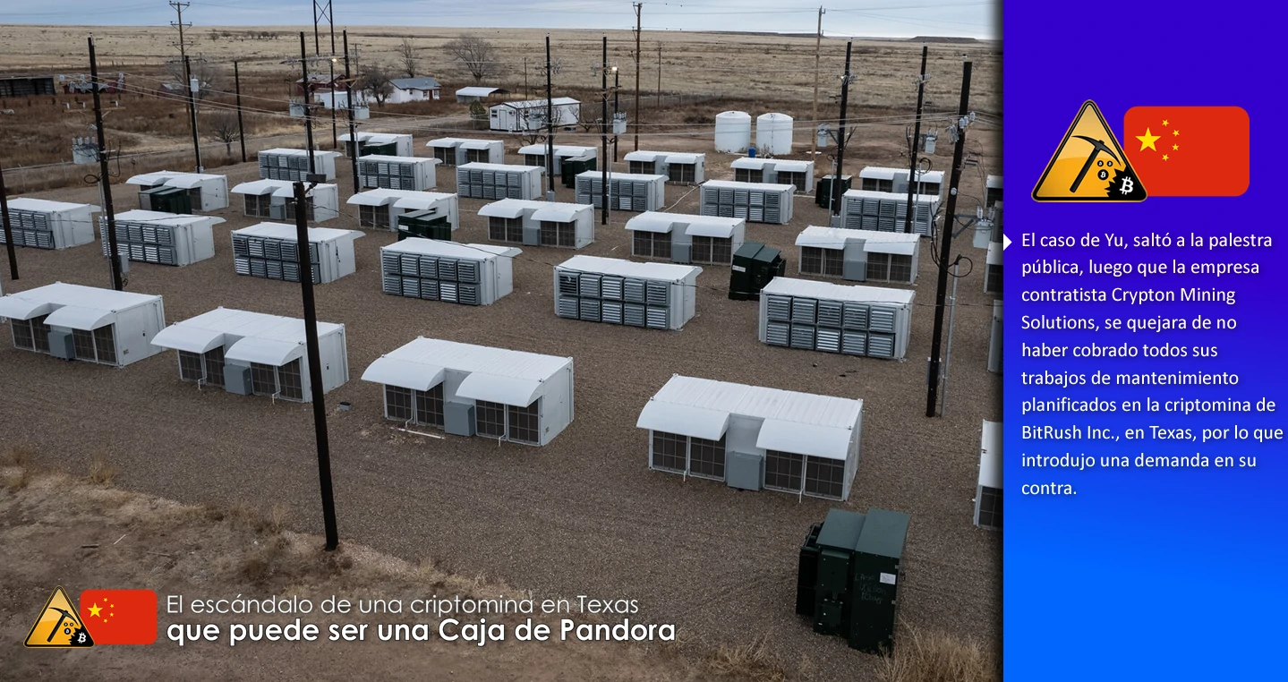 El caso de Yu, saltó a la palestra pública, luego que la empresa contratista Crypton Mining Solutions, se quejara de no haber cobrado todos sus trabajos de mantenimiento planificados en la criptomina de BitRush Inc., en Texas, por lo que introdujo una demanda en su contra.