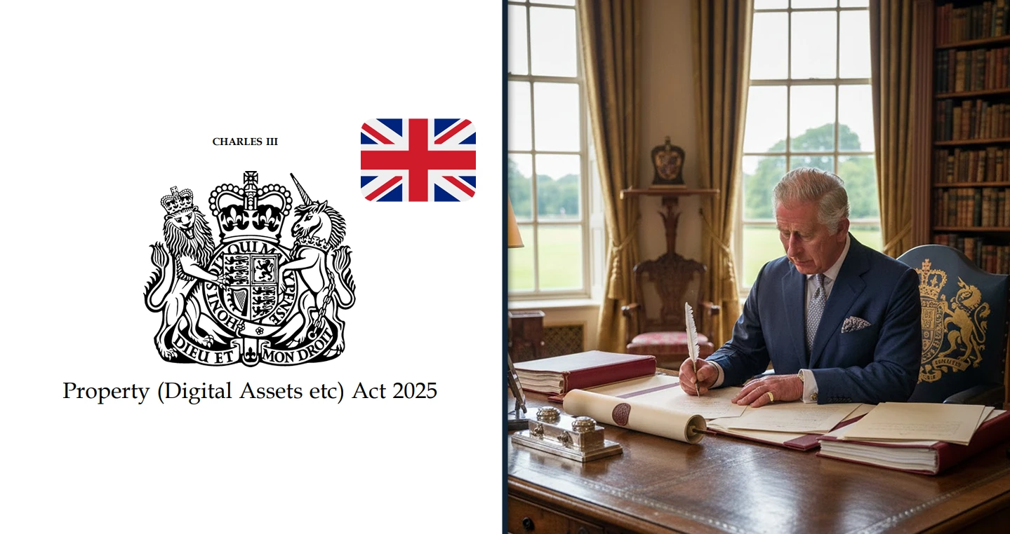 La nueva Ley, que proporciona una claridad largamente esperada a la industria cripto, fue firmada por el Rey Carlos III, quien otorgó la Sanción Real a la Ley de Propiedad (Activos Digitales, etc.) de 2025 «Property (Digital Assets etc) Act 2025», reconociendo oficialmente a los activos digitales como una tercera y nueva categoría de propiedad legal.