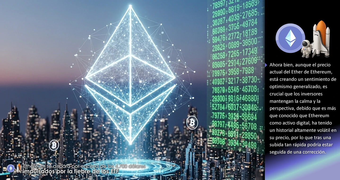 Ahora bien, aunque el precio actual del Ether de Ethereum, está creando un sentimiento de optimismo generalizado, es crucial que los inversores mantengan la calma y la perspectiva, debido que es más que conocido que Ethereum como activo digital, ha tenido un historial altamente volátil en su precio, por lo que tras una subida tan rápida podría estar seguida de una corrección.