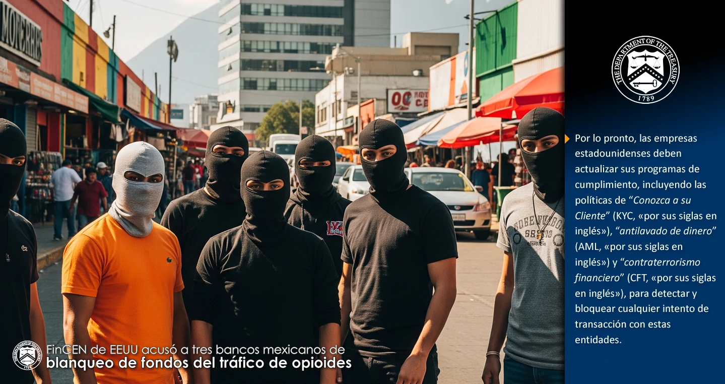 No obstante, una vez más se ha comprobado que esto no es del todo cierto, ya que la semana pasada, la Red de Control de Delitos Financieros (FinCEN, «por sus siglas en inglés») del Departamento del Tesoro de Estados Unidos, dio un paso sin precedentes al emitir órdenes contra tres instituciones financieras con sede en México, por precisamente facilitar el lavado de dinero vinculado al tráfico de opioides.