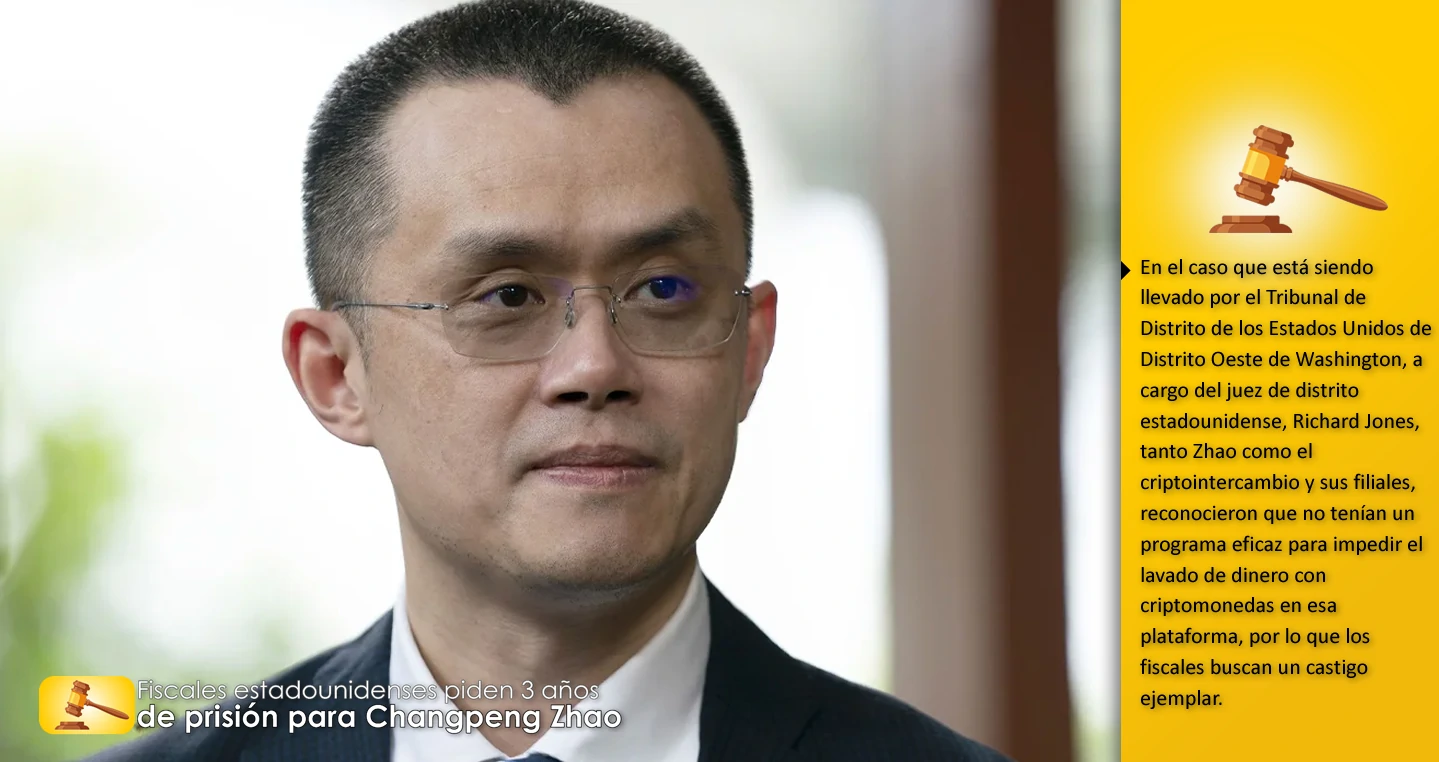 Este miércoles, se conoció que los fiscales estadounidenses que llevan el caso contra Changpeng “CZ” Zhao, fundador y ex CEO de Binance, hicieron una solicitud para que cumpla tres años de prisión a través de una presentación el martes por la noche en el tribunal federal de Seattle, luego que el exejecutivo del mayor criptointercambio del mundo, se declarara culpable el año pasado.
