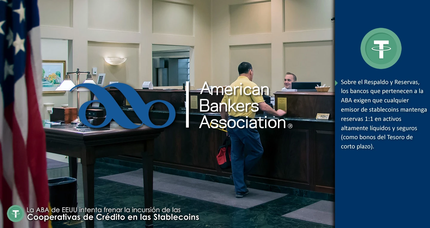 Sobre el Respaldo y Reservas, los bancos que pertenecen a la ABA exigen que cualquier emisor de stablecoins mantenga reservas 1:1 en activos altamente líquidos y seguros (como bonos del Tesoro de corto plazo).