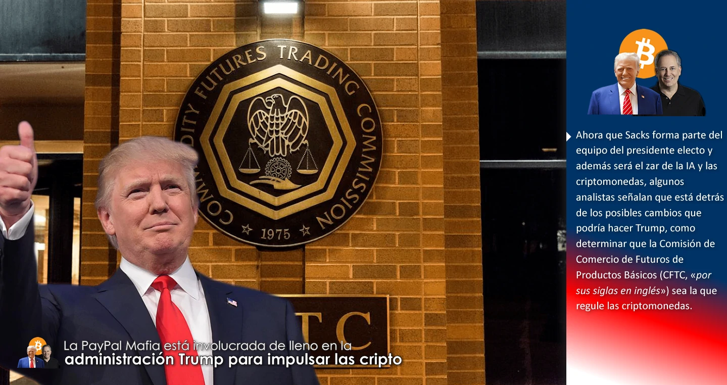 Ahora que Sacks forma parte del equipo del presidente electo y además será el zar de la IA y las criptomonedas, algunos analistas señalan que está detrás de los posibles cambios que podría hacer Trump, como determinar que la Comisión de Comercio de Futuros de Productos Básicos (CFTC, «por sus siglas en inglés») sea la que regule las criptomonedas.